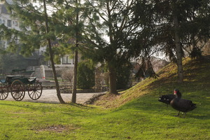 Обустройством "деревни" занимается её создатель, Борислав Станишич, и делает он это обстоятельно. Сейчас там собраны несколько исторических деревянных зданий из разных мест: мельницы, жилые дома. Есть разные типы заселения, пруды с лебедями. Разумеется, есть типичный сербский ресторан. Если этот ресторан не устраивает, через дорогу стоит огромный сербский ресторан другого типа: в виде большого шатра с камином в центре и летними флигелями по разным сторонам. И, наконец, через всё поселение проходит миниатюрная железная дорога.