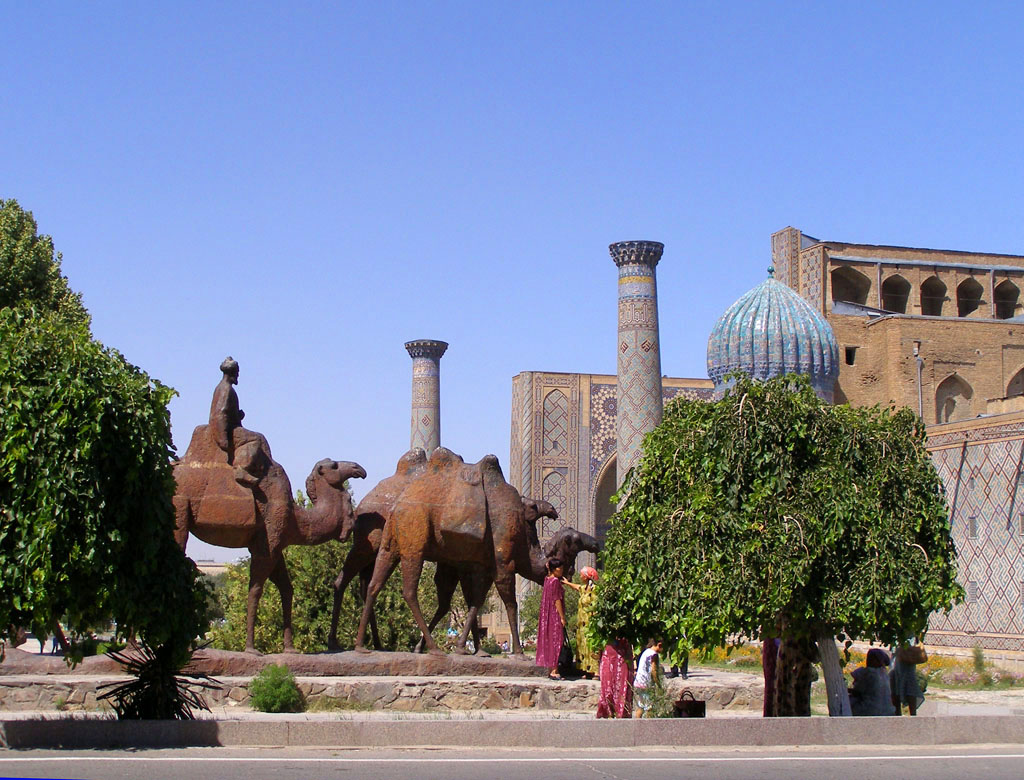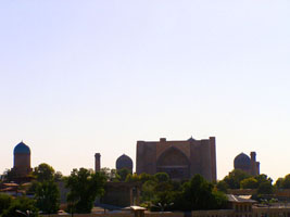 Это виды на Регистан - квартал старинных медресе (религиозных школ). Находится в самом центре Самарканда. В него мы попадём позже.