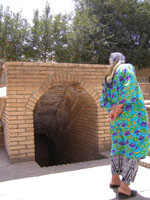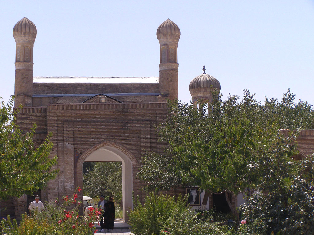 Пока обходили мавзолей, выбежала группа местных. Они действительно одеваются вот таким образом. Пожалуй, только в Бухаре более европейский подход. Бабушка очень так изящно "повернулась посмотреть, не повернулось ли там что". :)