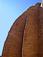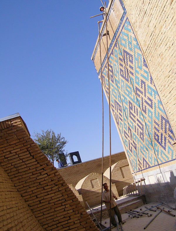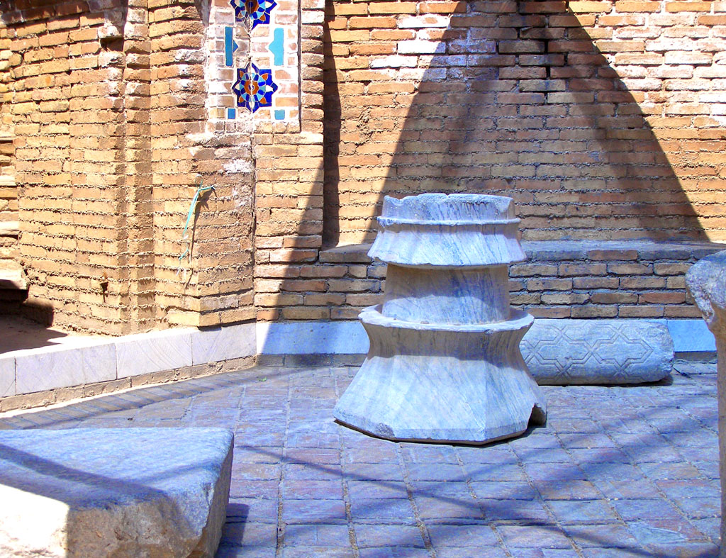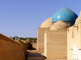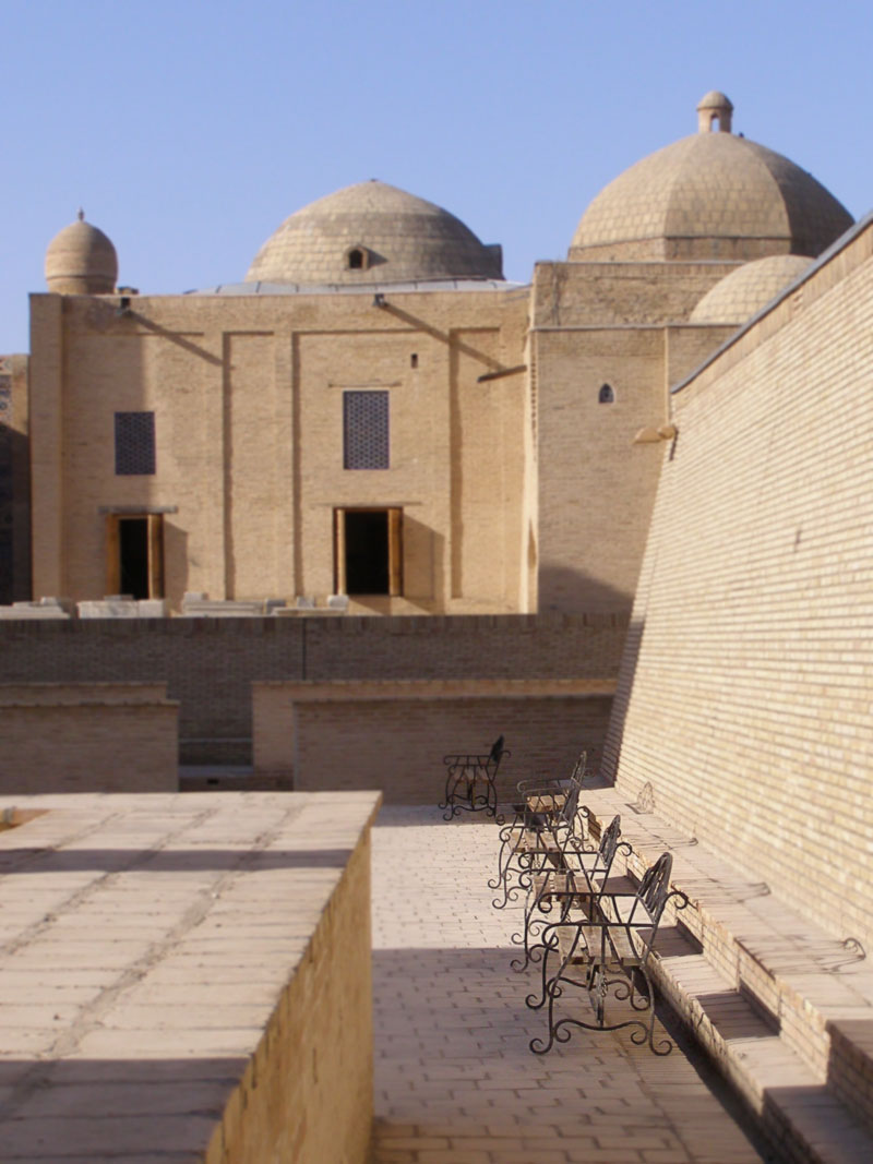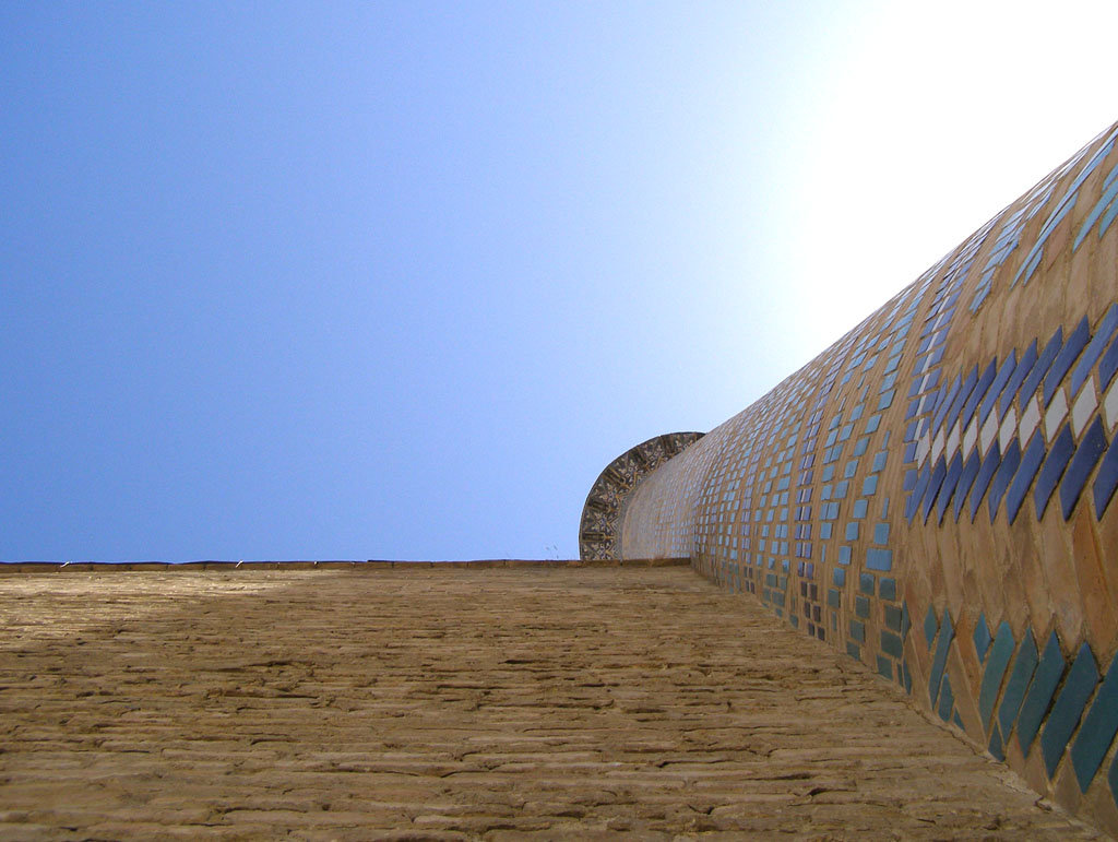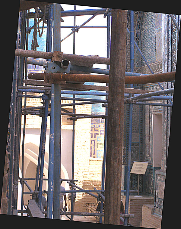 Не дошли до Афросиаба (не там свернули). Гуляли по сложному комплексу мавзолея «Шакх-и-Зинда». Яркое появление архитектуры с тесными проходами, лесенками, контрастными тенями, куполами, мавзолеями. Напоминает загадочность замка из фильма с Дэвидом Боуи «Лабиринт». В неожиданных местах встречаются групы надгробий. Зародилась мысль начинать фотографировать всё это по-другому. Как-то иначе.