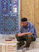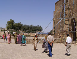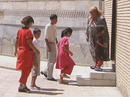 Ходили в дальние части города, искали раскопки древнего Афросиаба. Видели мусульманское кладбище и как на склоне рабочие на песок укладывали дёрн с травой. Почему-то в том районе много детей, говорящих нам «hello!». Отвечали им тем же.