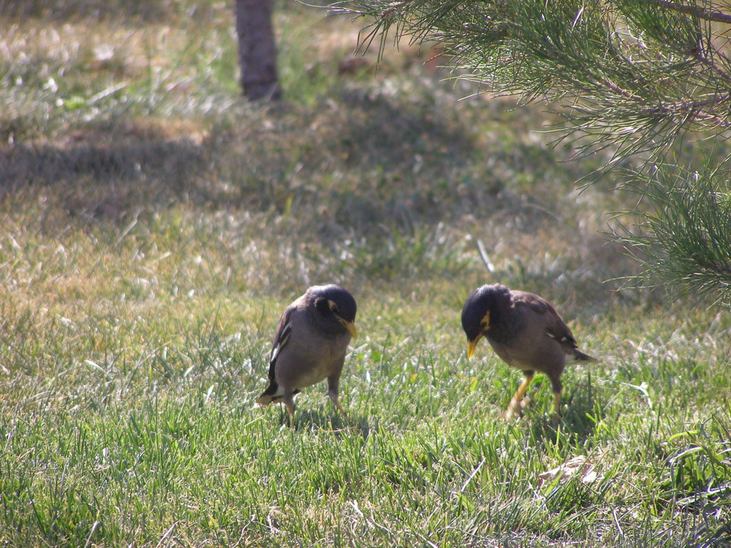 Только по приезду, от неожиданных знакомых ;) узнал, что это майны или афганские скворцы. Энциклопедия утверждает, что легко обучаются произносить слова и целые фразы. Оказалось, совсем не простая птица! Хотя, по её осмысленному поведению нечто такое заметно.