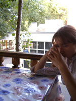 Завтракали мантами с чаем. Вообще, из-за сухого воздуха быстро сохнет горло. Надо иногда заходить в кафе и пить зелёный чай.